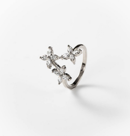 Bague tris de fleurs en métal rhodié - Cod.: BIGAS043